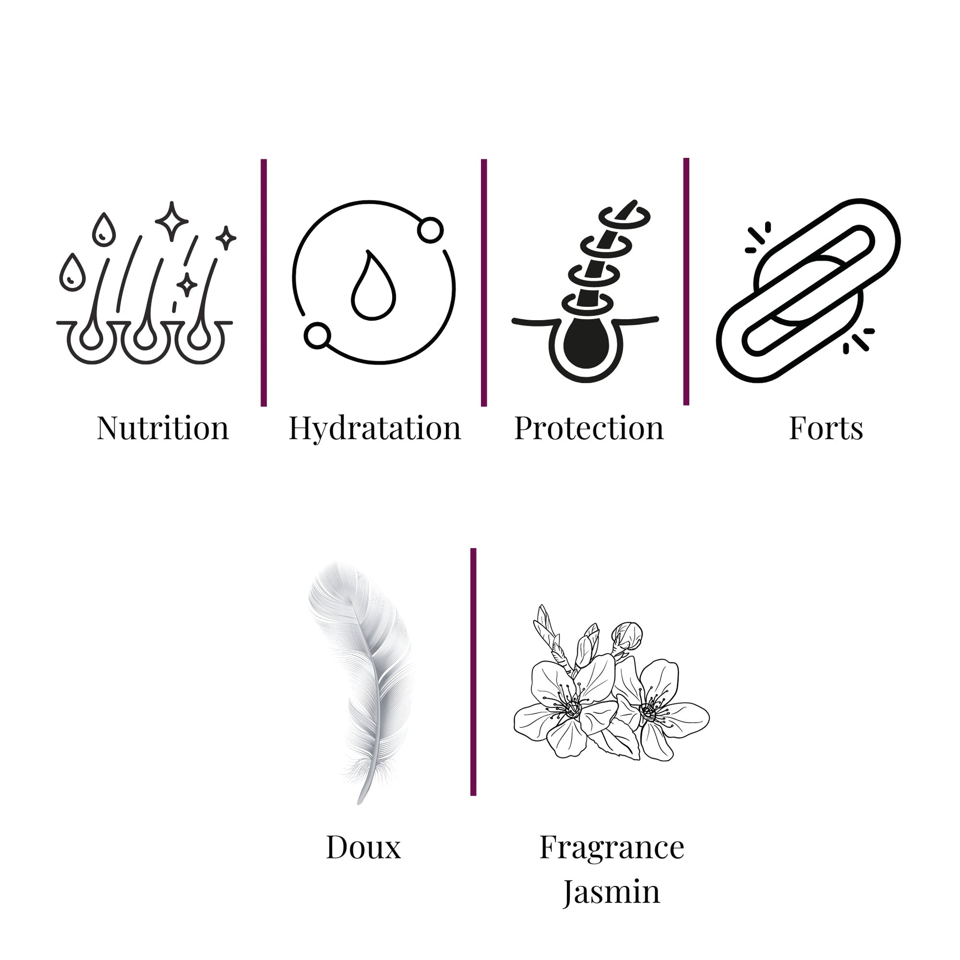 Agit en profondeur pour hydrater, fortifier, adoucir et ajouter de la brillance, tout en favorisant une croissance saine des cheveux.